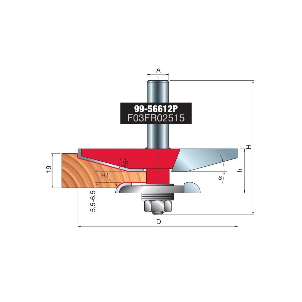Frez Freud do kasetonów, z nożami tylnymi, trzpień 12 mm, 6 x 25 (promień 1 x głębokość cięcia)