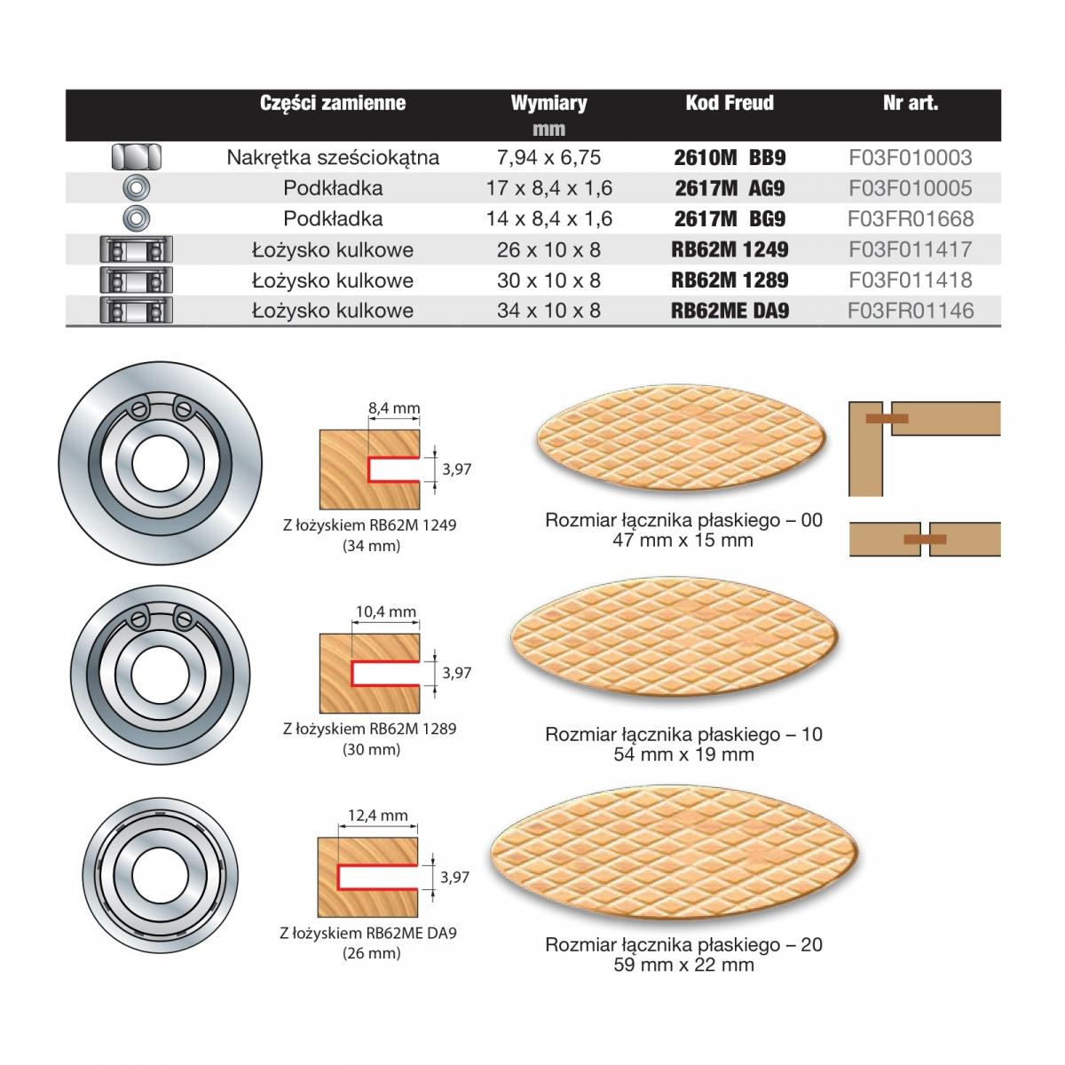 Łączniki płaskie to jedno z najłatwiejszychi najbardziej ekonomicznych połączeń drewnianych stosowanych w stolarstwie.Każdy frez do łączników płaskich jest dostarczany wraz z 3 różnymi średnicami łożysk kulkowych.