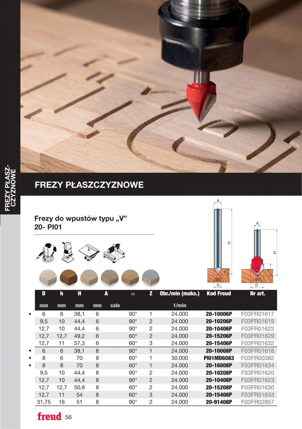 Frez do wpustów typu „V” x 12,70 x 12,70 x 49,2 x 6 Z2 α=60° FREUD 20-15206P