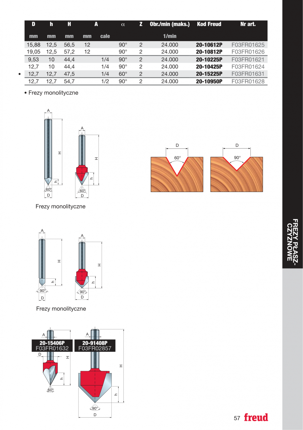 Frez do wpustów typu „V” x 31,70 x 16 x 51,0 x 8 Z2 α=90° FREUD 20-91408P