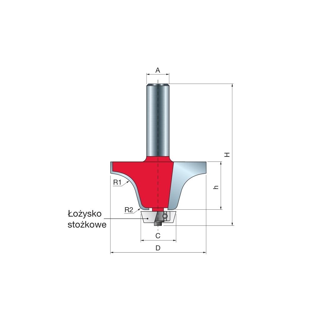 Frez Freud do zaokrąglania esowatego krawędzi łączącej z elementem podblatowym, trzpień 12 mm, 12,7 x 6,35 (promień 1 x promień 2)